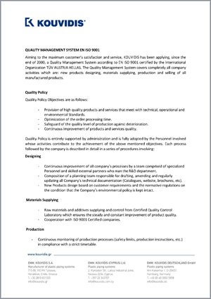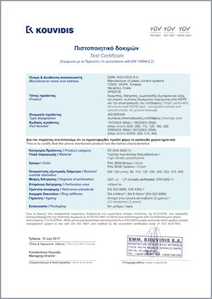 *Ο σωλήνας CONDUR HF του συστήματος CONDUR HF – CONFLEX HF ελέγχεται από το εργαστήριο ελέγχου ποιότητας της KOUVIDIS για την αντοχή του στην κρούση (6J) στους -45oC.