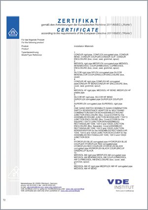 - APPLICATION STANDARD:EN 61386.21, ΕΝ 50642, EN 60754-2