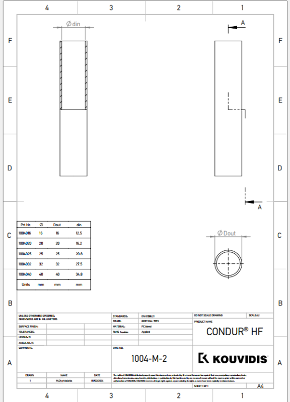 Ο σωλήνας CONDUR HF αποτελεί μέρος της οικογένειας προϊόντων ελεύθερων αλογόνων που έχει αναπτύξει η KOUVIDIS από το 2006. Μαζί με τον σωλήνα CONFLEX HF και τα όλα τα εξαρτήματα CONDUR (μούφες, κολάρα, ρακόρ και κουτιά διακλάδωσης) συνθέτουν το σύστημα σωλήνων για την προστασία και διαχείριση αγωγών CONDUR HF – CONFLEX HF. Παράγεται με βάση το Πολυκαρμπονάτο (PC) μια πλαστική πρώτη ύλη πολύ ανθεκτική και σχεδόν άθραυστη που του εξασφαλίζει κορυφαίες μηχανικές επιδόσεις, βαρέος τύπου, σε συμπίεση και κρούση σε ακραίες θερμοκρασιακές συνθήκες*. Τα προηγμένα αυτά χαρακτηριστικά τον καθιστούν μοναδικό και ιδανικό για κατασκευαστικά έργα υψηλών προδιαγραφών.